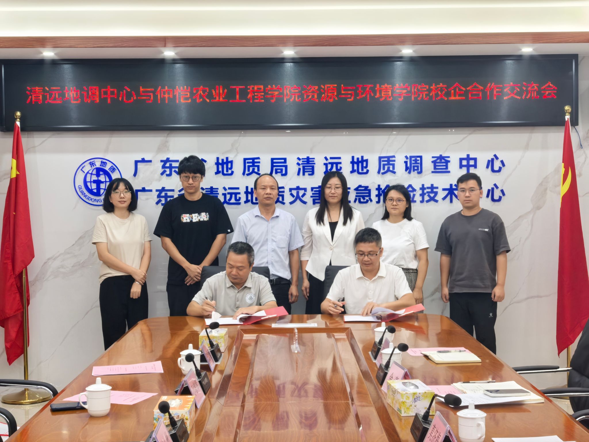 为深化产教融合,创新人才培养模式,10月11日,资源与环境学院与广东省地质局清远地质调查中心,在清远地质调查中心举行了实践教学基地合作协议签订仪式。广东省地质局清远地质调查中心党委书记莫济海、党委副书记韩丽杰,资源与环境学院党委书记黄礼彬、副院长刁增辉和相关负责人员出席本次签约仪式。