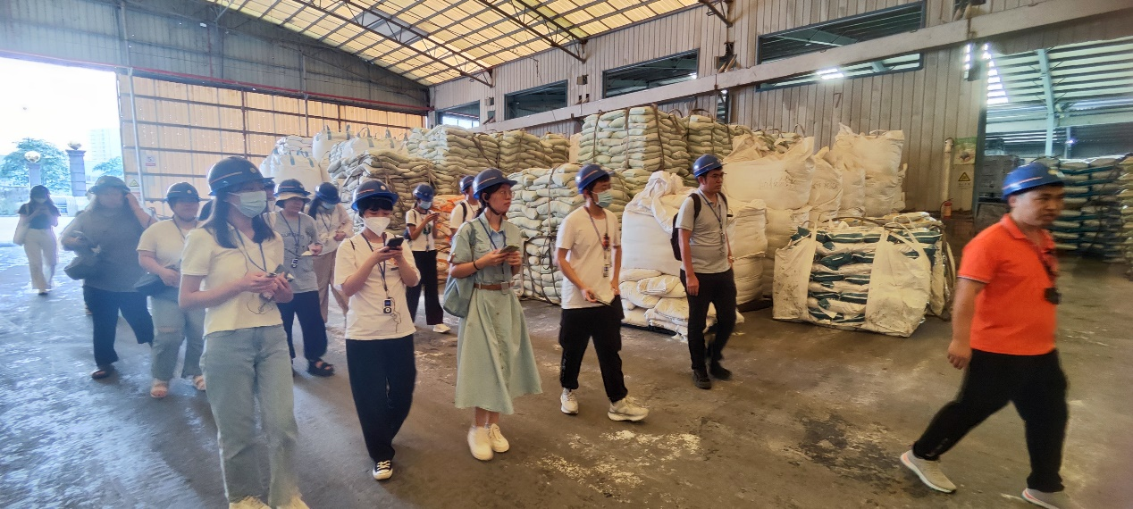 随后,嘉美好顾浩杰经理带领仲恺师生参观了嘉美好复合肥高塔造粒生产工艺车间区、产品展示中心以及肥料技术质量研发中心,并现场讲解土壤肥料学、水肥一体化技术等知识,加深了同学们对于专业知识的了解。顾浩杰经理详细介绍了嘉美好系列产品的研发生产流程以及质量管理追踪体系,先进的检测设备等。同学们兴致满满,积极与陈海斌老师和顾浩杰经理探讨交流。