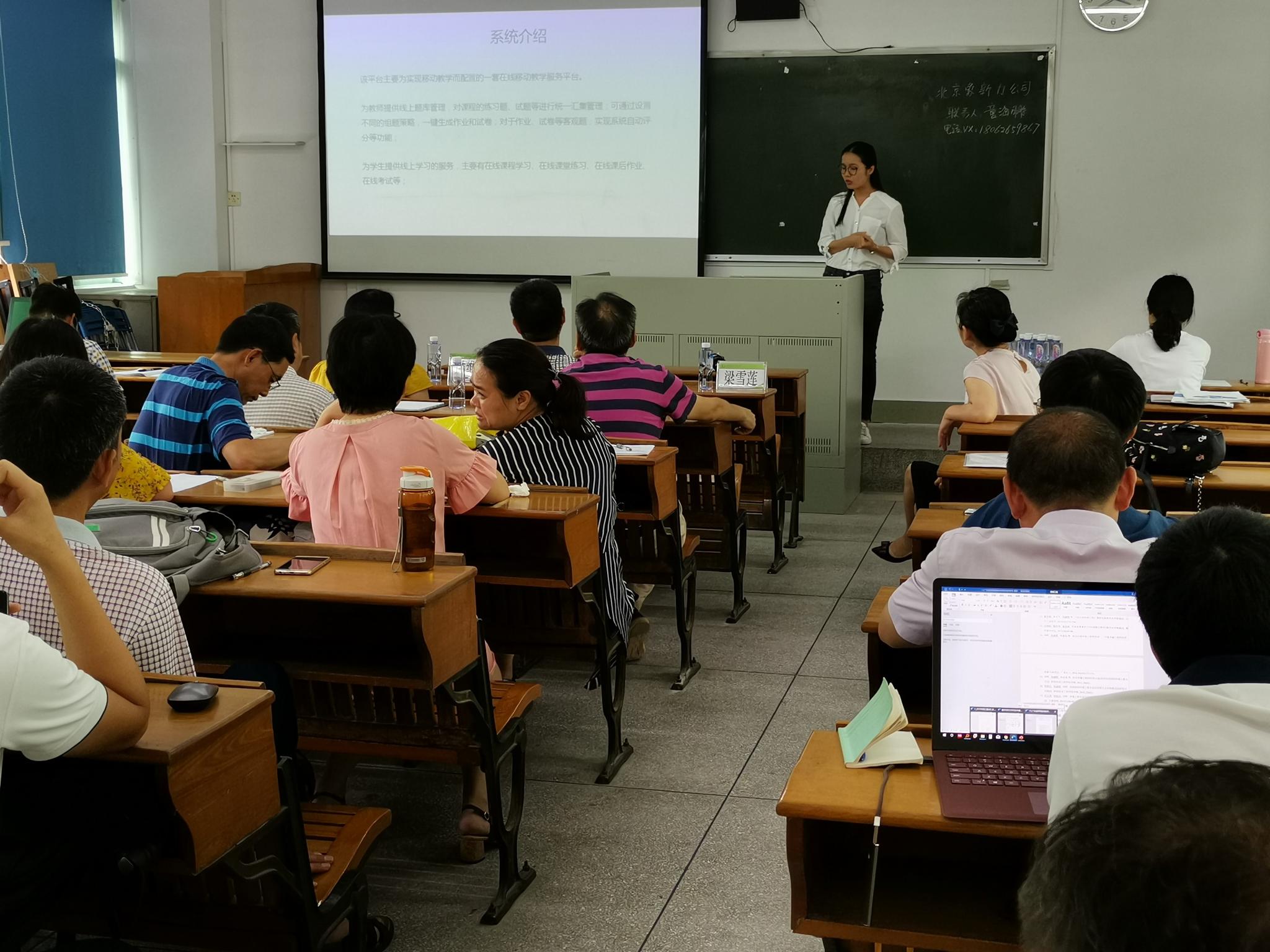 会上,刘院长希望通过本次会议推动各项目的工作,同时积极探索与院外公司更好地做好产学研合作。会上,北京润尼尔网络科技有限公司的吴远淦经理和北京象新力网络科技有限公司的董海鹏经理向大家介绍了模拟仿真实验的开展路径和案例。学校网络与现代教育技术中心李建军老师和广州菁泽信息技术有限公司梁少玲经理给大家介绍了移动教学的发展情况、实现途径与展望,让大家对移动教学有了更加深刻的认识。