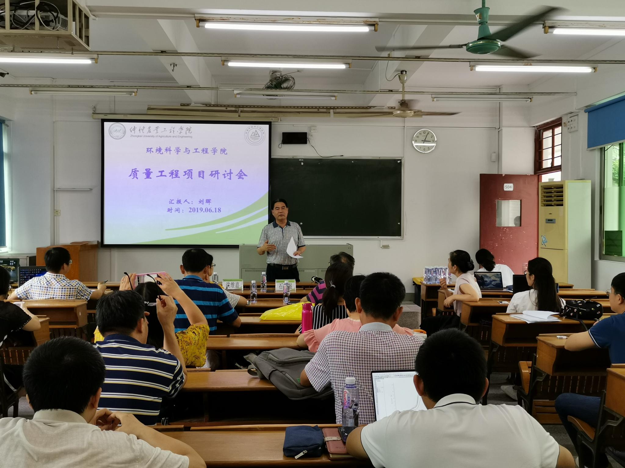 2019年6月18日下午,环境科学与工程学院在海珠校区教学楼504召开质量工程项目教学研讨会,学校教务处石玉强处长、梁雪莲副处长、洪维佳副处长及环境学院全体没课老师,院外教学类公司代表等参加了会议。会议由环境学院刘晖副院长主持。