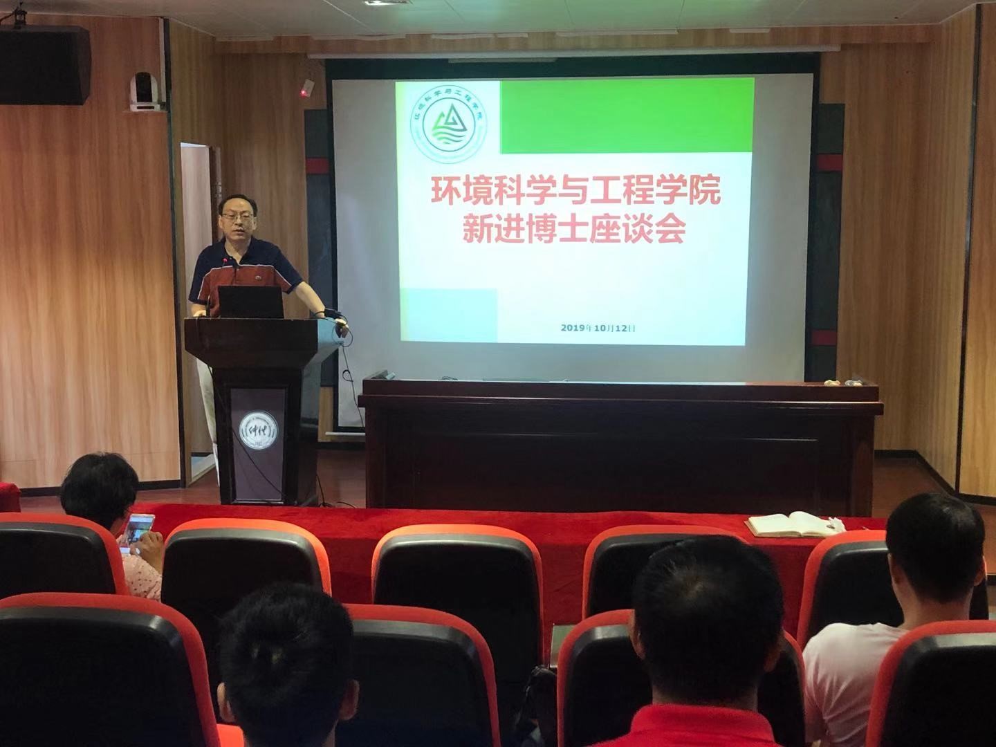 10月12日上午,环境科学与工程学院在英东楼111会议室召开新进博士座谈会,会议由学院杜建军院长主持,学院领导班子、各系主任、办公室主任、教学和科研秘书、近3年新进博士(教授)参加了座谈会。