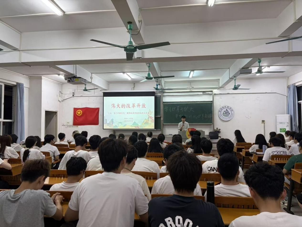 10月27日晚,资源与环境学院团委在白云校区曾楼203开展题为“学习改革开放史,争做新时代改革先锋”主题团课。学院和兄弟学院的入团积极分子、25级团员代表参加了本次团课,本次团课由李梓龙老师主讲。