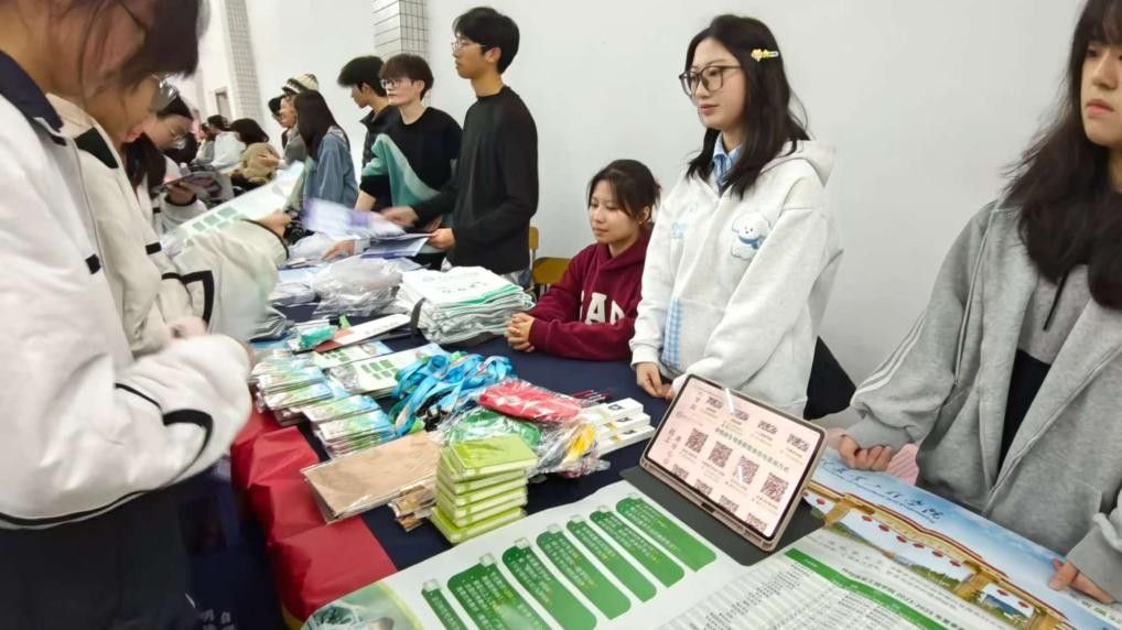 会议结束以后,寒招小分队来到学校体育馆开展摆摊宣传。队员们分工协作,现场介绍我校的学科特色与校园生活,给学弟学妹派发招生宣传单,耐心解答大家关于报考分数、专业选择、校园社团等方面的疑问。摊位前气氛热烈,不少同学驻足咨询,小分队成员结合自身的求学经历,用生动的分享让学弟学妹们对仲园有了更真切的了解。