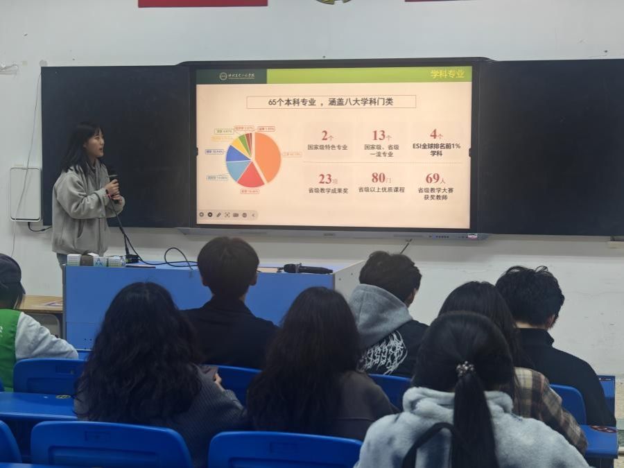 小队化身“仲园代言人”,走进学校多媒体教室与学弟学妹们面对面进行分享与交流,用PPT让学弟学妹们了解仲恺特色、专业类别、生活条件等。以专业的解读拆解升学迷思,以实用的干货助力高三学子奔赴自己的理想前程。